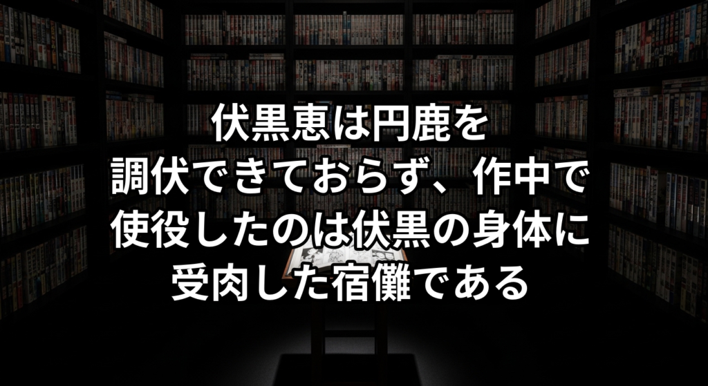 伏黒恵は円鹿を調伏できておらず、作中で使役したのは伏黒の身体に受肉した宿儺である